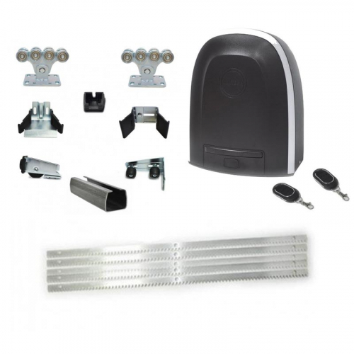 Этот комплект фурнитуры рассчитан на легкие/средние бытовые ворота весом до 450 кг и шириной створки до 4 метров. Комплект Alutech состоит из фирменной фурнитуры для откатных ворот от белорусского производителя Alutech с 6-ти метровой направляющей, автоматики Alutech RTO-500 и 5-ти метровой зубчатой рейки.